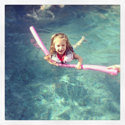 Our kids are crazy! It's only March ( this post is late) barely mid 70's and the kids want to swim. Trent and I sit on the sidelines and watch as they shiver all around the pool. Brr... I'm getting the chills just thinking about it. They sure love it, especially Pierce!